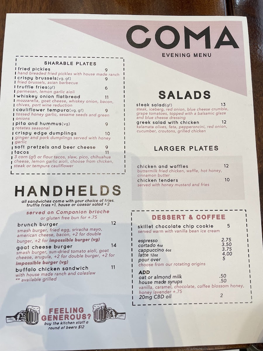 The coffee at Coma is truly a star attraction. Their menu boasts a delightful variety of signature drinks, with must-try options like the Iced Strawberry Matcha—a refreshing blend perfect for summer days—or the Cascara Orange Latte, which marries the fruity essence of cascara with zesty orange for a unique flavor adventure. Don't miss the Chocolate Orange Latte, a dreamy combination that's both comforting and indulgent. Combine your drink with a bite to eat; the chicken panini and double Coma smash burger are favorites among regulars, delivering a satisfying, hearty meal.